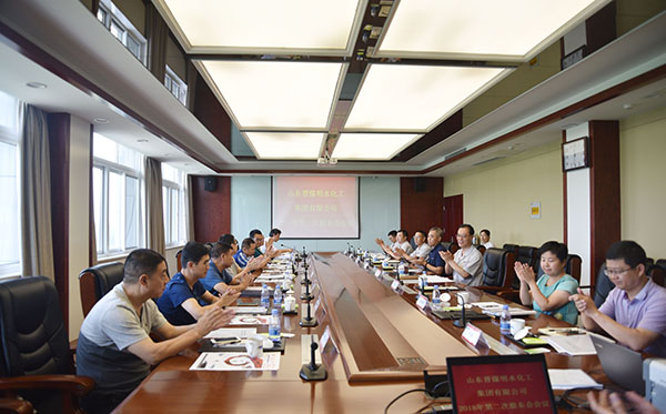 7月12日上午,山东晋煤明水化工集团有限公司2018年度股东第一、二次会议、第五届董事会、监事会议公司在集团3#办公楼五层会议室召开。晋煤集团煤化工事业部副总经理张晋峤及派驻明化董监事等领导,明化集团董事长孙洪海、副总经理孙志田、财务总监栗向燕等参加了会议。孙洪海主持会议。