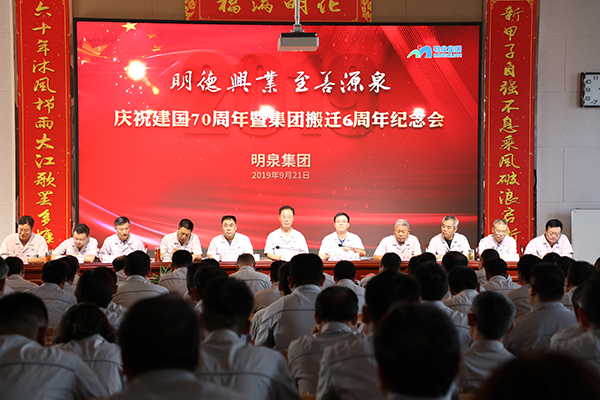 9月21日下午3:00,“明德兴业 至善源泉”庆祝建国70周年暨集团搬迁6周年纪念会在集团优秀国学培训基地隆重举行。集团领导孙洪海、殷传光、仇健、郭彦超、彭建军、孙志田、高建平、朱卫、王胜利、孙庆利、高行川及管理干部、员工代表300人参加大会,集团常务副总经理、轮值CEO殷传光主持会议。