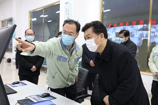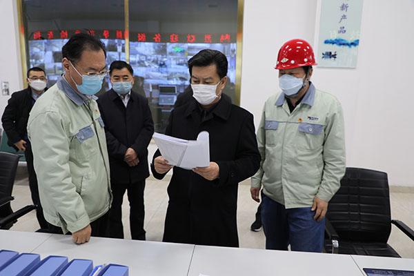 李胜利一行实地考察了明泉科技中央控制室,听取了关于集团生产经营现状和发展规划的汇报。李胜利对集团借搬迁之机实现转型升级发展表示肯定,并检查了集团疫情防控检查站和岗位消杀、全员测量体温记录等工作。李胜利对集团“有部署、有措施、有落实”的疫情防控工作表示满意,特别是对集团从员工班上防控消杀到发放口罩、面、油、蔬菜等生活用品的全方位疫情管控措施表示赞赏,并建议园区作为有效措施进行推广。