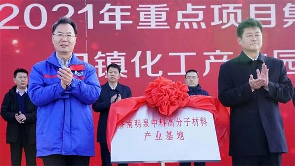 区委书记马保岭,集团党委书记、董事长孙洪海共同为济南明泉中科高分子材料产业基地揭牌。随着马保岭宣布“项目开工”,现场一辆辆挖掘机、工程车响亮鸣笛,集团pps项目正式破土动工。