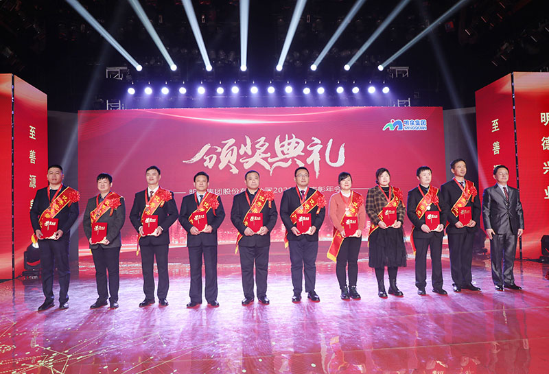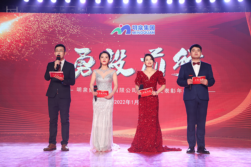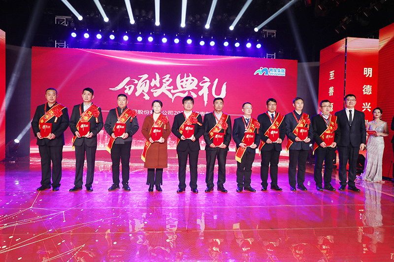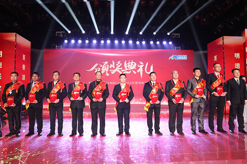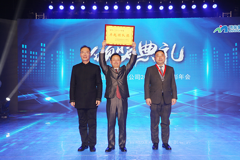 与会人员共同观看了集团2021年度工作回顾视频《勇毅前行筑基础 发力高端向未来》。集团总裁孙志田宣读了《时博在线平台关于表彰2021年度优秀集体、优秀个人的决定》,隆重表彰了2021年度涌现出的35个优秀集体和491名优秀个人。吕民松、孙洪海、孙志田,集团董事张圣成、刘文举、任冰涛、李光,集团监事韩加强、蔡力、刘洋,分别为集团2021年度先进集体、先进个人以及明士新材料公司获奖者颁奖。