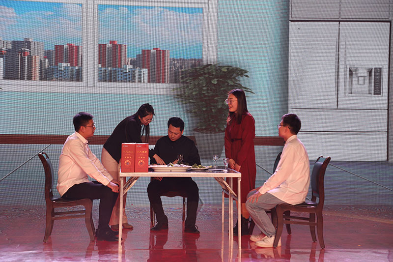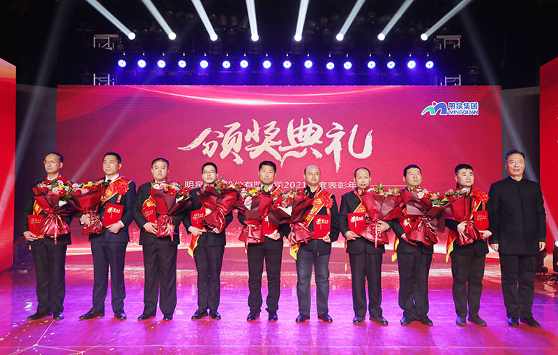 年会上,集团员工演出的舞蹈、歌曲、音诗画、情景剧等节目与颁奖融合并进、环环相扣。集团强化执行力军事管理文化集训大队队员表演的擒敌拳与口号声震撼全场,展示出明泉铁军的风采和团队精神。音诗画《明泉英雄》刻画了英雄的模样,讴歌了为祖国、为社会、为企业发展甘于奉献的英雄形象。情景剧《疫情之下》讲述了北京、上海研发中心努力工作的研发人员融入明泉文化的温暖故事。节目中家人们对远在明士北京、上海明士华公司员工的温情寄语深深地感动了在场观众。劳模采访视频《知足是福》真实再现了劳模群体全身心投入工作,用奋斗创造幸福生活的劳模精神。