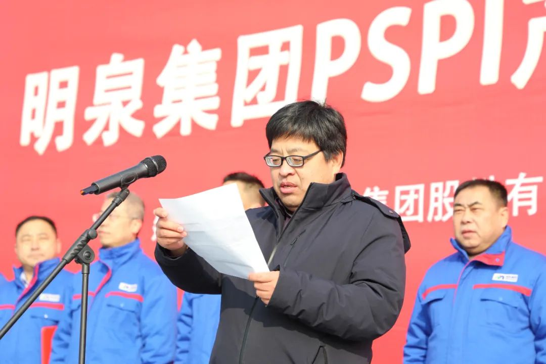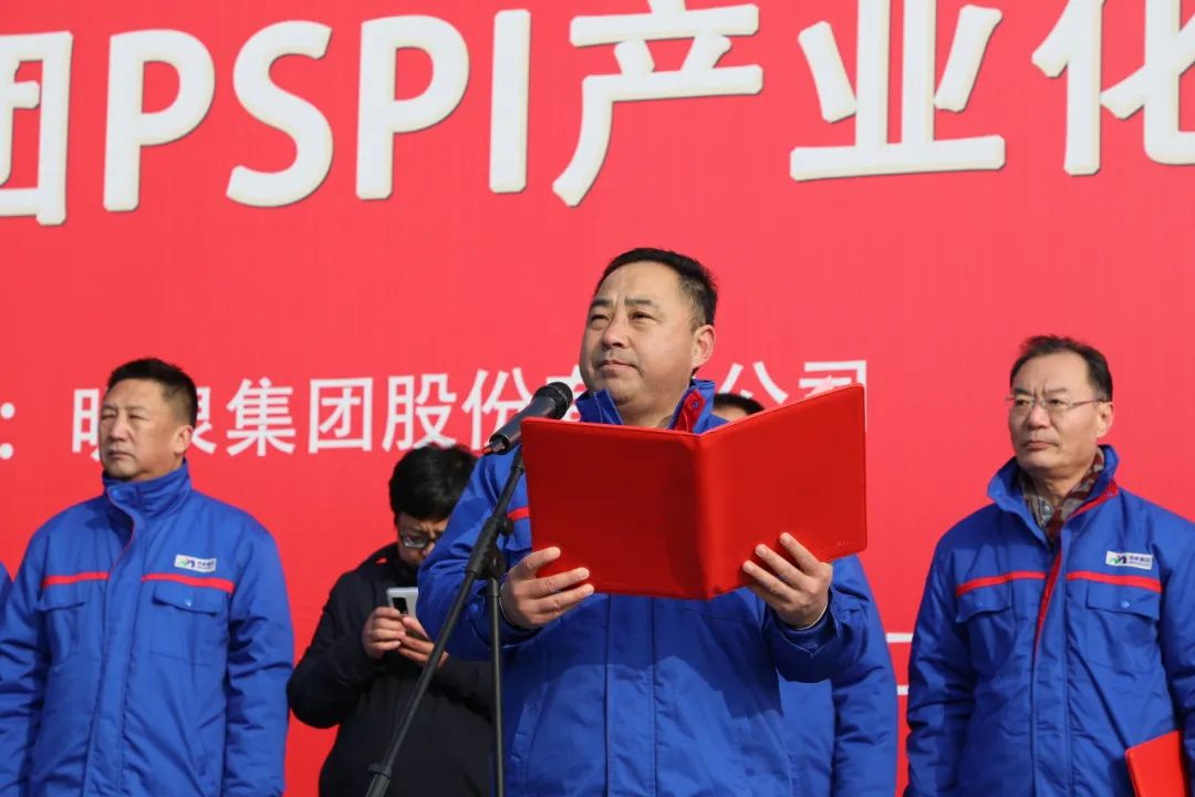 集团党委书记、董事长孙洪海致辞。他讲道,光敏聚酰亚胺(PSPI)是芯片封装与制造必需的关键材料,我们国家亟需建立自主可控的半导体产业链,解决芯片“卡脖子”难题;国内市场急需PSPI国产化替代进口,确保供应链稳定安全。我们必须以时不我待的紧迫感、以舍我其谁的精气神,按照既定计划保安全、保质量地推进项目建设。PSPI产业化基地项目是集团自2017年以来实施“新三高”战略取得的重大进展,对于建设高新技术突出的高科技明泉意义重大。希望明士新材料公司和承建单位齐心协力,在确保安全的前提下,高标准、高质量、高效率推进项目建设,力争早日建成投产,为集团打造科技明泉、推进高质量发展再立新功。