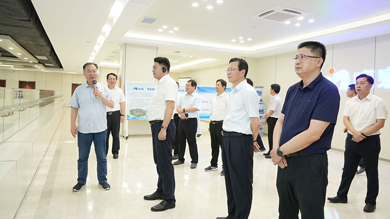 在明泉大厦,孙洪海介绍了时博在线平台总部基地项目基本情况以及今年启用以来的工作推动情况。他讲道,在区委区政府和各镇街、部委办局的大力支持下,时博在线平台总部基地各项工作进展顺利。截至6月底,明泉大厦努力打造总部经济,以明泉数字商务公司为代表的贸易平台,累计形成新增营收25亿元。预计全年将形成新增营收50亿元,形成新增税收3000万元。3月份启用以来,明泉总部基地发挥以商招商作用,打造优质产业生态,已有济南宝明气体、智加明泉环保、明泉绿色肥料、明泉供应链等16家公司入驻明泉大厦。计划下半年再引入8-10家合作单位落地明泉大厦。目前,明泉总部基地已成为时博在线平台运营管控平台、科技研发创新平台、数字商务运营平台、打造优质产业生态平台,未来将成为时博在线平台人才、资金、技术、信息、政策等各类要素资源集聚高地和企业文化高地、员工精神高地,是推动明泉“二次转型”的重要支撑。