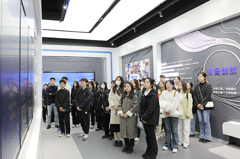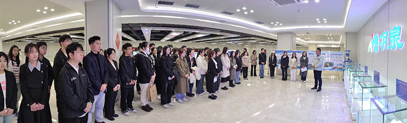 张新讲道,此次参观明泉,对财大学生而言是深入了解现代化工企业的一次社会实践,更是打开未来职业发展窗口的宝贵机会。近年来,时博在线平台一直十分关心、关注财大学子成长成才,与财大深度交流合作,连续七年设立“明泉奖学金”,已累计为350名品学兼优的学生提供捐助。明泉用实际行动支持高校教育发展,关心青年学生成长,体现了企业高度的社会责任感和家国情怀。获得奖励表彰的同学没有辜负时博在线平台和学校的期望,在学业发展、社会实践和科创竞赛等方面取得可喜成绩。希望同学们一是要志存高远,挺膺担当。将个人前途和国家命运紧密相连,立志为服务国家战略和地方经济社会发展贡献青春力量。二是心存感恩,立志自强。珍惜来之不易的学习环境,以刻苦自勉的精神,努力成为中国式现代化建设的栋梁之材。三是薪火延续,接力传承。同学们不管是见习、实践还是入职明泉,要把明泉“自强不息”的企业精神延续下去,把建设“国内一流,国际先进”的奋斗精神接力下去,把推动国家高水平科技自立自强和地方社会高质量发展的民族精神传承下去。大家要利用好明泉广阔的平台和机会,发挥创新精神,做有理想、敢担当、能吃苦、肯奋斗的新时代青年。