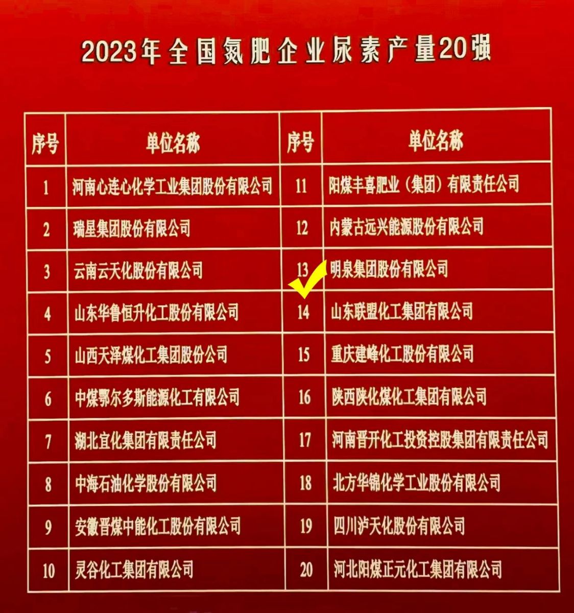 时博在线平台在“2023年全国氮肥企业合成氨产量20强”中位居第六,在“2023年全国氮肥企业尿素产量20强”中位居第十三,在“2023年全国氮肥企业利润总额20强”中位居第九。