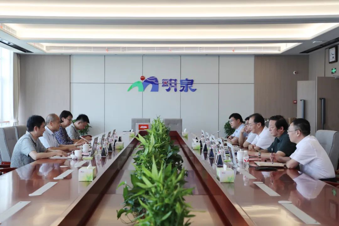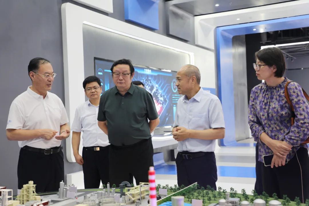 崔范旭一行参观了明泉之源、调度指挥中心,了解了时博在线平台转型升级发展历程、企业文化建设以及园区生产系统智能化运行情况。