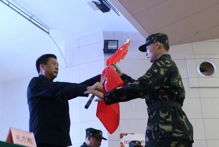 巩乃刚宣布集训队连队骨干任命命令。彭建军宣读《关于成立明泉集训大队临时党支部的批复》,并向四支连队授旗。