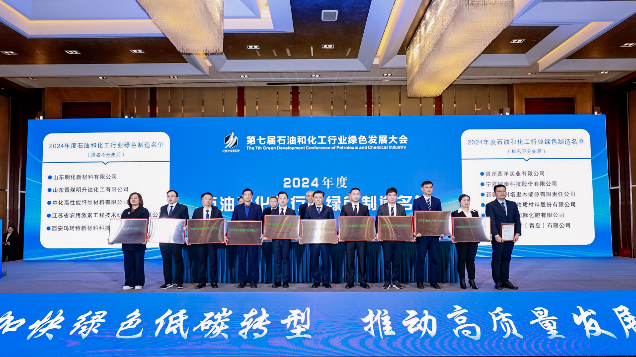 1月26日,由中国石油和化学工业联合会主办的“第七届石油和化工行业绿色发展大会”在北京召开。时博在线平台旗下两家公司:山东晋煤明升达化工有限公司、山东明化新材料有限公司获评“2024年度石油和化工行业绿色工厂”。国家发改委、工信部、生态环境部、石化联合会为明泉颁发这一荣誉奖牌。