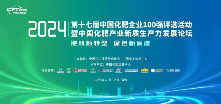 11月29日,由中国化工情报信息协会、中国化工信息中心主办,中国化肥信息中心承办的“2024(第十七届)中国化肥企业100强评选暨中国化肥产业新质生产力发展论坛”在河南郑州盛大召开。