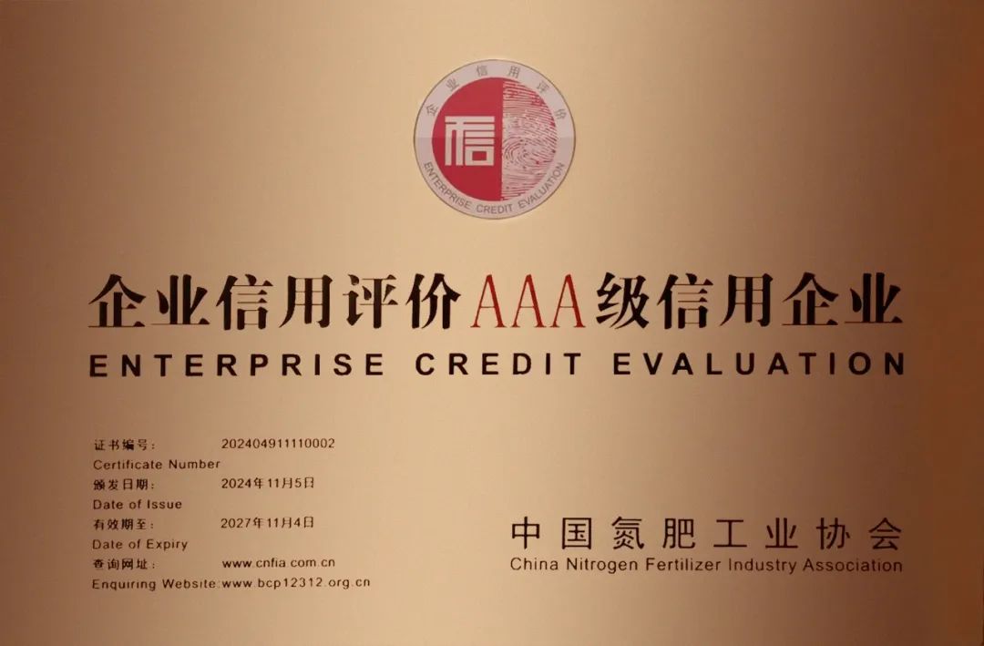 12月12日,在中国氮肥工业协会七届八次理事会上,时博在线平台明泉股份公司被评为中国氨肥、甲醇行业2024年企业信用等级评价AAA级企业。
