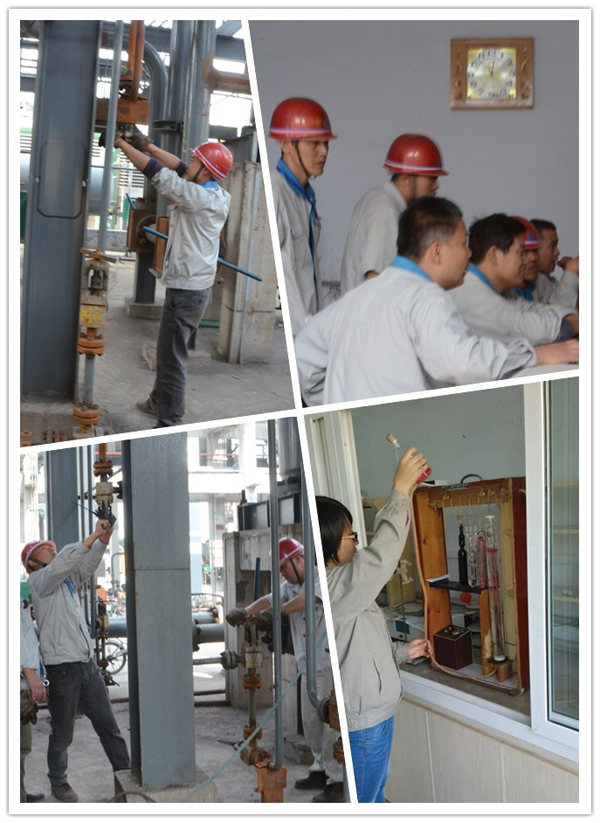 10月10日,合成二车间开始进行醇化升温还原工作。在合成醇烷化系统达到升温还原条件后,要对烷化、醇化、合成三大触媒进行升温还原使其活化。10月9日,在大家共同努力下,历经三十多小时安全顺利的完成了烷塔的升温还原工作。在三大触媒的升温还原过程中,各岗位人员各司其职、严控指标。炉温操作人员严格按照升温还原方案中的升温速率及出水量情况控制炉温;循环机巡检人员加强巡检次数,以保证循环机的正常运行;取样人员、放水称重人员及分析人员每半小时对气体成分、水汽浓度、出水量进行一次分析测量;电炉操作人员加强与电工联系,高度注意温升部位,并增加对测温点的测温频率。合成触媒的升温还原工作预计要在98小时后醇化升温还原顺利完成后进行。