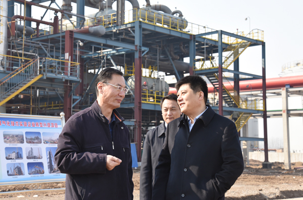 韩伟一行参观了晋煤明化生产调度中心、尿素二车间总控室及MTA项目建设现场,孙洪海简单介绍了企业安全生产系统现代化控制技术、主要产品生产情况及“新三高”战略的规划预期。在大项目现场,孙志田汇报了MTA项目基本情况、工程进度和 产品的未来市场前景。了解了明化的各项情况之后,韩伟对明化搬迁后的生产恢复和建设给予了肯定,并着重询问了MTA项目技术先进性和下游产品链开发及市场情况,要求企业一定要做好稳定安全生产,推进转型升级项目建设,为未来的新材料园区规划做好充足的基础准备工作。