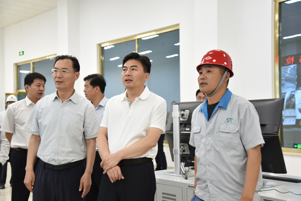 刘天东一行来到明泉科技MTA项目现场,实地察看并详细询问了 MTA项目的建设进度以及目前试开车的相关情况。在中央控制室孙志田汇报了试开车阶段的主要任务目标,介绍了各个工段调试运行情况。