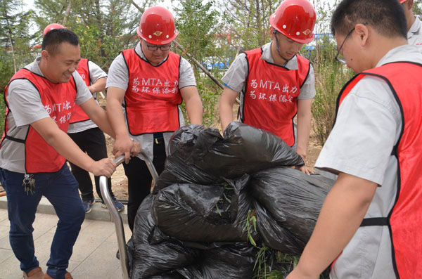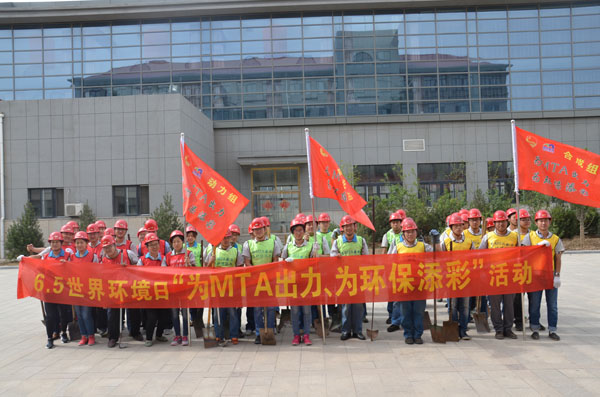 劳动开始后,50余名团员青年、环保志愿者代表分三个队,分别清理了MTA中心控制室周围、指挥部院落前以及食堂西侧东南角处的环境卫生。