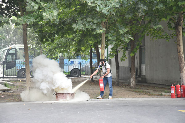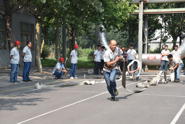 8Kg干粉灭火器接力灭火由每个单位的安全主任和一名男职工配合完成,考核了单位领导和员工的协调配合程度。