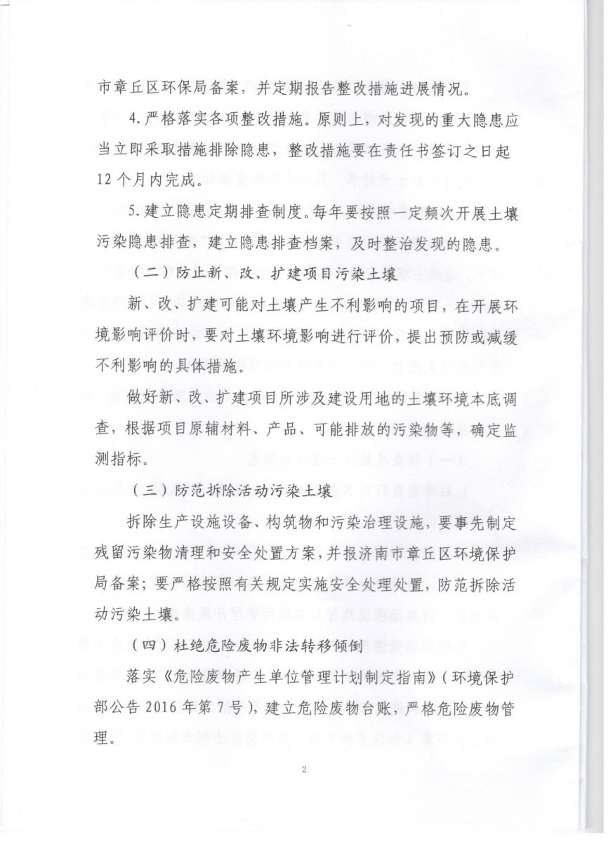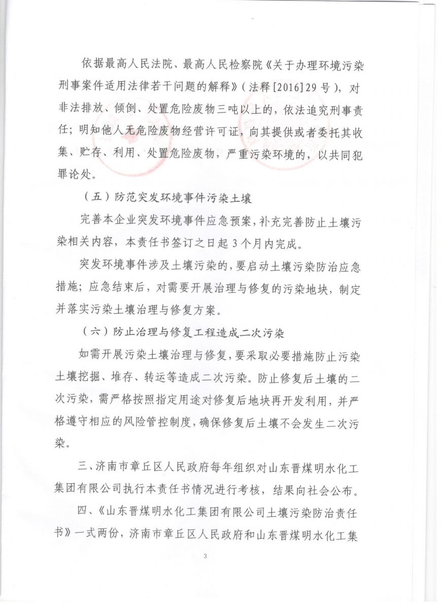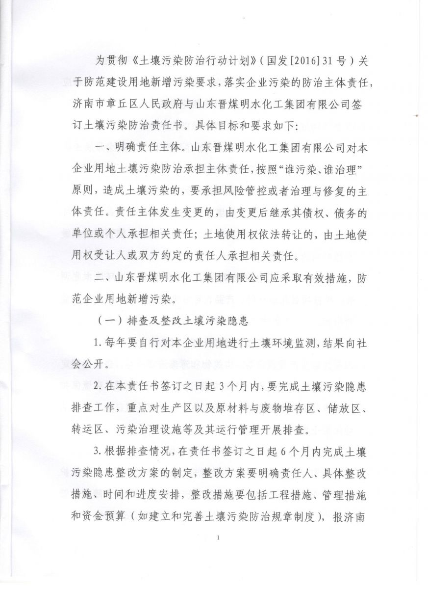 山东晋煤明水化工集团有限公司土壤污染防治责任书