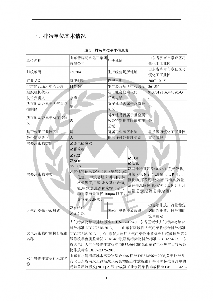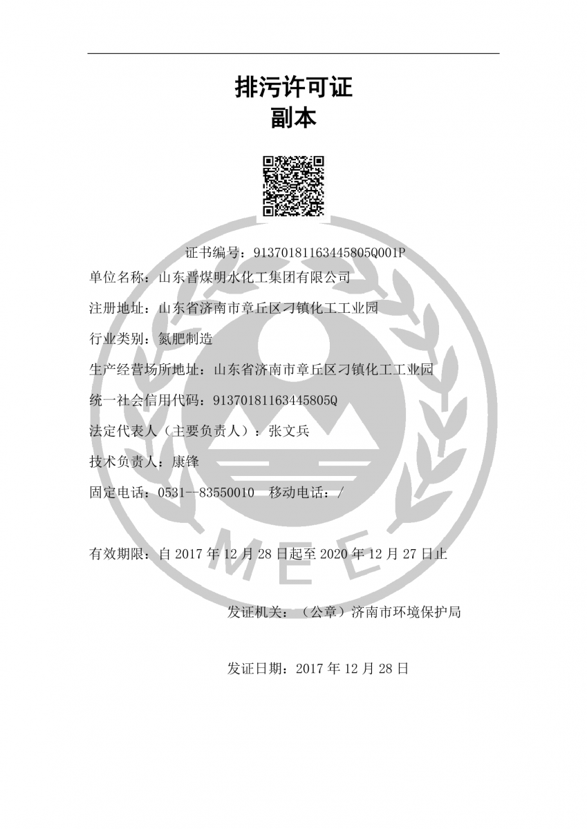 晋煤明化排污许可证